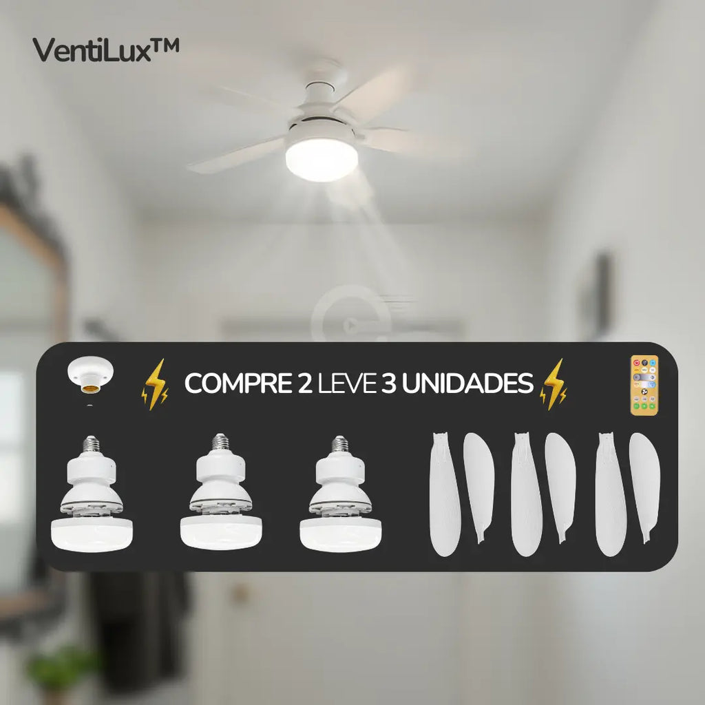 [COMPRE 2 LEVE 3] VentiLux™ Ventilador Portátil de Teto com luz Led e Controle Remoto para Refrescar Qualquer Cômodo do seu Lar